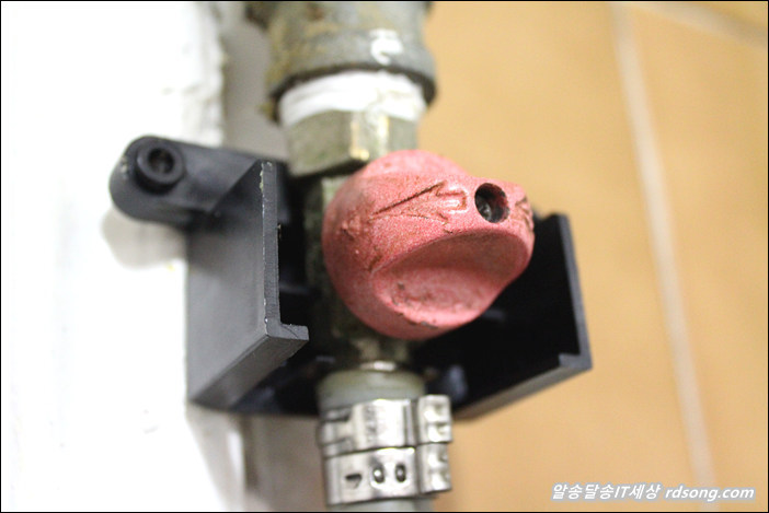 가스밸브가 잠긴상태에서 브라켓을 뒷면에 고정하고 가스락을 고정볼트로 체결하면 됩니다 간단해요