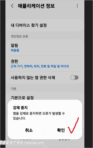 과감히 강제중지 해 줍니다. 앱을 강제 중지 하면 오류가 발생할수 있습니다. 그러던지 말던지! 상관없음!