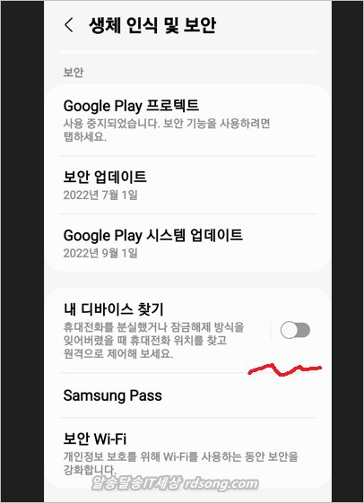 핸드폰 램 및 cpu 사용 배터리 사용하기 때문에 내 디바이스 찾기 기능 끄려고 합니다. 핸드폰 분실하거나 찾을 때 원격 제어 할수 있게 만들어 놓은 기능인데 이런 거 나한테는 필요 없는 기능임, 과감히 내 핸드폰 분실하면 포기 합니다.