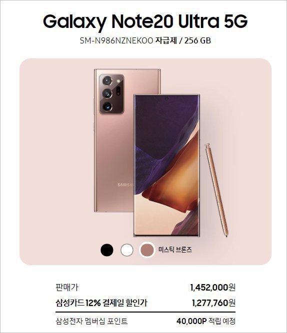 Galaxy Note20 울트라 5G 가격 1,452,000원