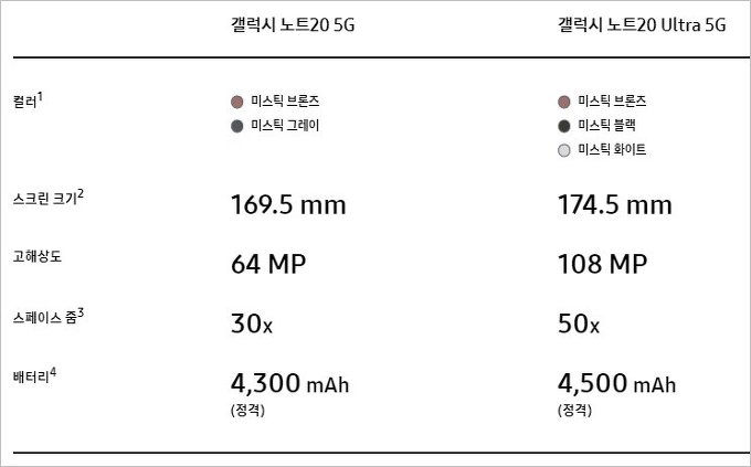 갤럭시 노트20 스펙