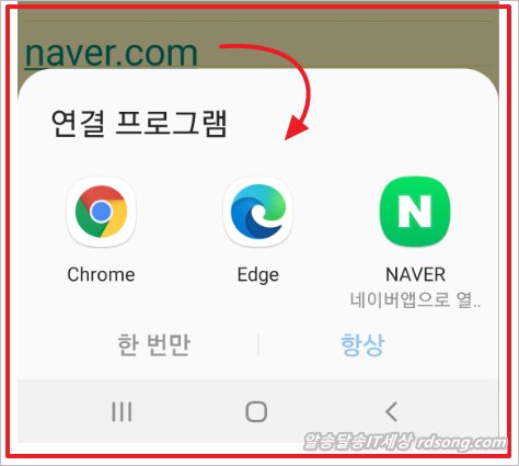 갤럭시 링크 누르면 브라우저 앱 선택 하도록 연결 프로그램 팝업 뜨도록
