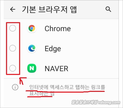 이젠 갤럭시 스마트폰에서 링크 터치하면 브라우저 앱 선택 하는 팝업 창이 뜹니다.