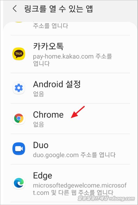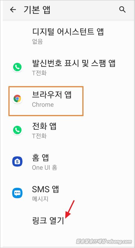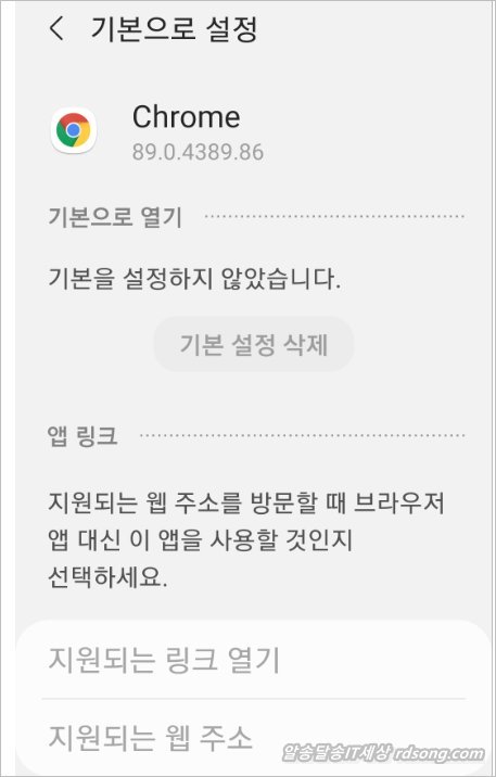 기본앱에서 브라우저 앱 : chrome 선택 되어 사용중입니다. 현재 안드로이드 11 사용 하며, 아래의 링크열기 터치 합니다.