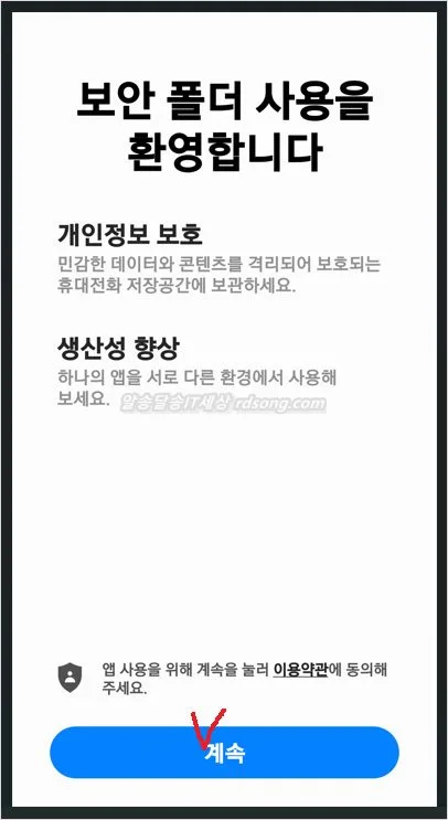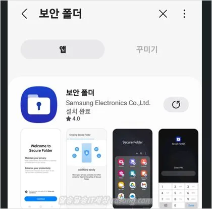 갤럭시 보안폴더 만들어 졌습니다. 갤럭시 앱스 화면 가서 보면 [ 보안폴더] 앱 을 터치 하면 아래 화면 처럼 뜹니다