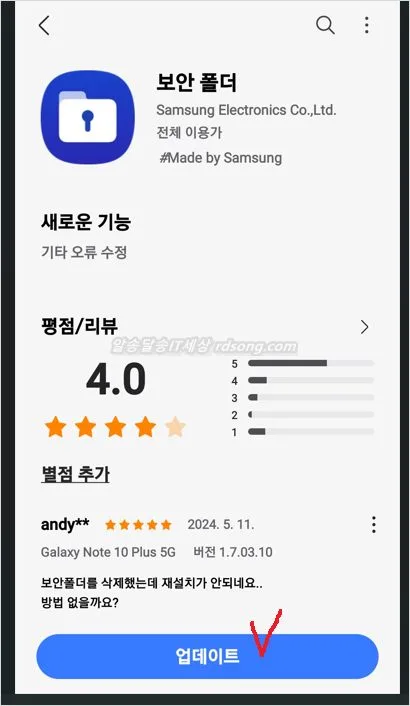 갤럭시 스토어 ( galaxy store) 가서 우측 상단에서 보안폴더 검색 해 보세요