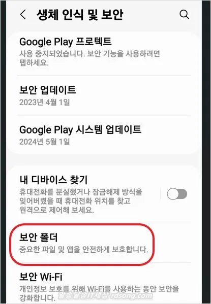 갤럭시 보안폴더 잠금방식 변경 / 파일추가