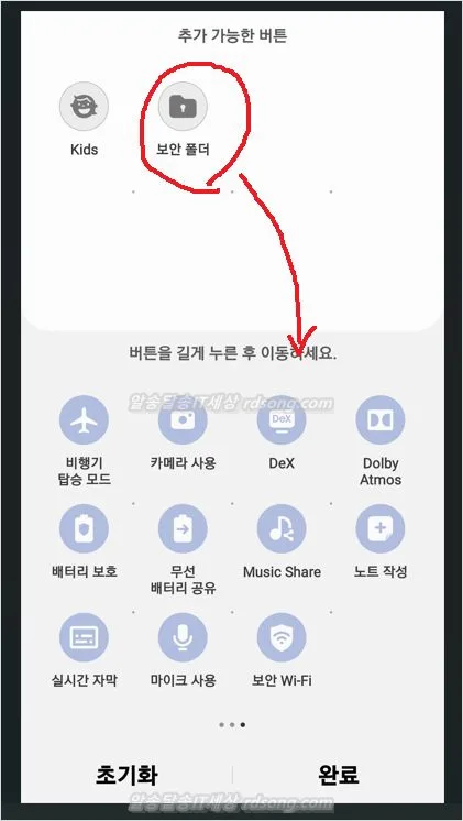 갤럭시 보안폴더 안보여요? 상단 빠른 알림창 : 점3 > 버튼편집