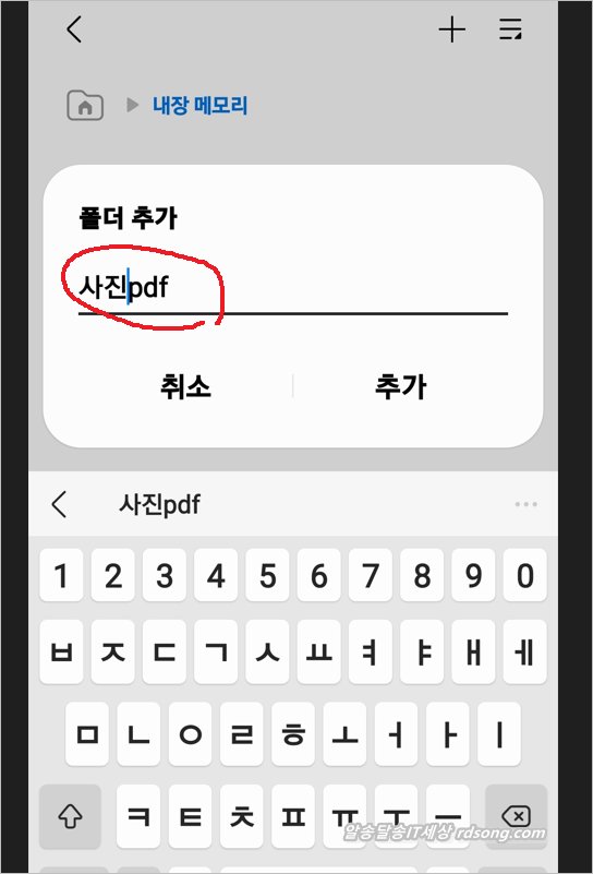 + 터치하여 폴더 추가 하여 따로 pdf 폴더를 새로 만들어 저장하는 것을 권장합니다.