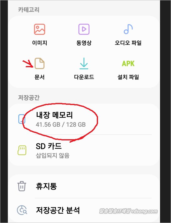 내 핸드폰 어딘가에 어떤 [문서] 저장 되어 있다면, 예) 엑셀, txt, pdf , hwp 등 그 문서들을 모두 불러 들여 보여 주게 됩니다.