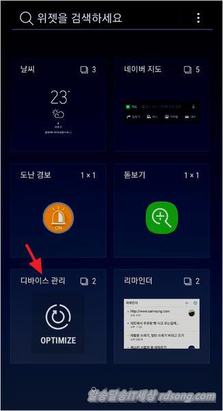 갤러시 스마트폰 홈화면 위젯 설치, 디바이스 관리 위젯을 홈 화면에 배치하는 방법 마칩니다