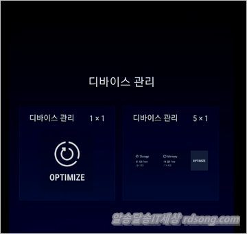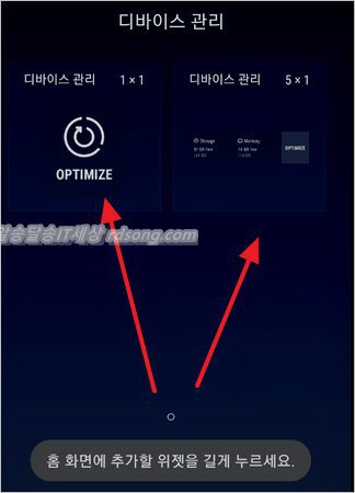 optimize 라고 작은 위젯 (1×1) , 저장공간을 비롯하여 가용램 표시 형태의 위젯 (5×1) , 각자 적당히 마음에 드는 위젯을 선택 합니다