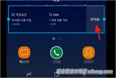 갤럭시 스마트폰 홈화면 으로 디바이스관리 위젯 설치하여 램정리 최적화 쉽게 할수 있습니다 다른 스마트폰 램 정리 어플 많지만 기본적으로 제공하는 위젯 만으로도 편리 핸드폰 최적화 하여 쓸수 있습니다