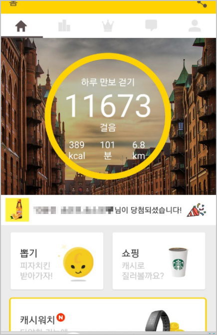 캐시워크 돈 버는 어플 [ 만보기 ] 얼마나 걸었나?
