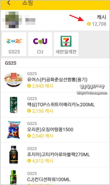 돈버는 어플 캐시워크 쓰는 방법, 적립 캐시 : 편의점 사용
