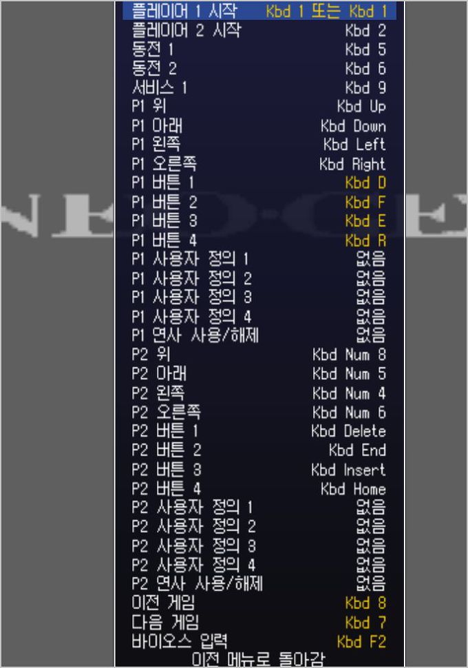 그런데 여기에는 키보드 1 시작, 5 동전 / 게임횟수 ,