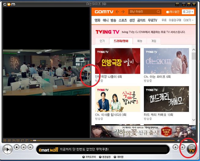 곰티비 에서는 무료로 드라마/영화가 있는데 대부분 드라마가 좀 있는데요 곰티비 단축아이콘은 F9 인데 화면중앙의 삼각형 모양을 선택, 또는 우측하단의  곰티비 gomTV 클릭하면 화면이 나타나고 사라지게 할수 있습니다