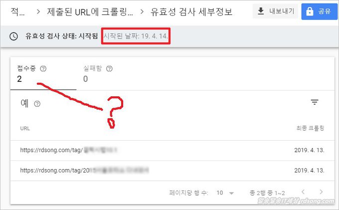 유효성 검사 상태 시작됨 : 4월 14일 시작된 것인데 ..아직도 허우적 거리고 있는데 내가 보기엔 구글서치콘솔에 뭔가 문제점이 있는거 같은데… ▼