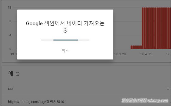 google 색인에서 데이타 가져오는 중…! url 검사 하면서 구글색인 되어 있는지 검사를 하게 되는데 …