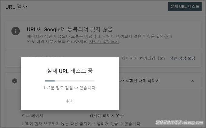 실제 url 테스트 눌러 보면 아래처럼 테스팅을 거치고 url이 색인 가능한지 점검을 한다