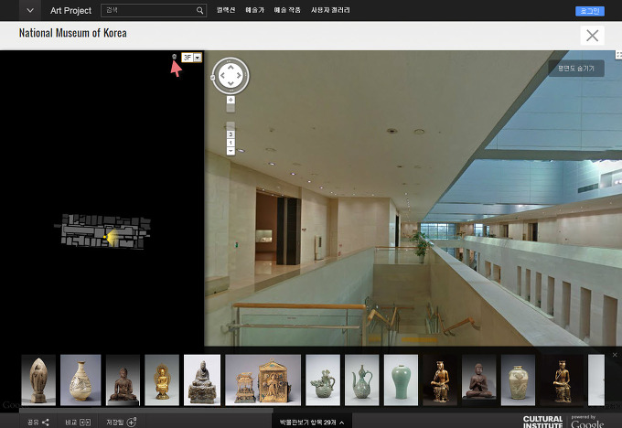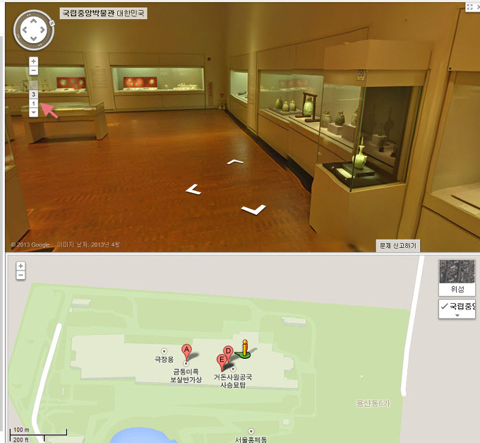 구글뷰로 직접 국립중앙박물관을 가지 않고서도 박물관내부를 살펴봤는데 키보드와 마우스만을 가지고 층별로 전시된 유물을 볼수 있어서 좋은데요 실제가서 봐주는게 제대로 된 학습과 교육이 될 터인데 일단 이렇게라도 봐주고 나중에가서 봐야 할깍 봅니다