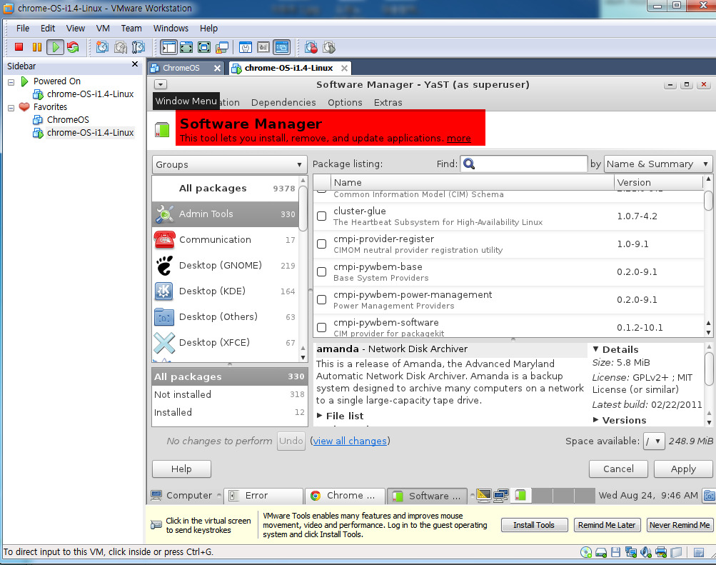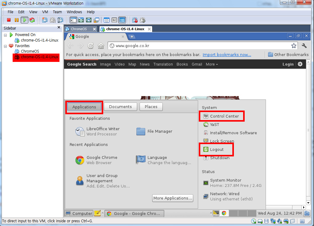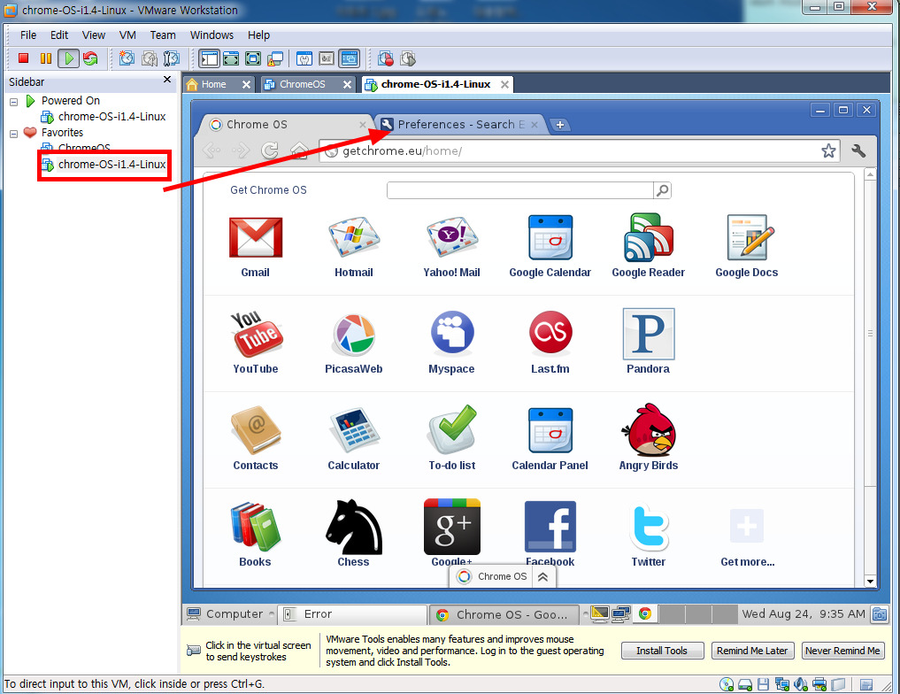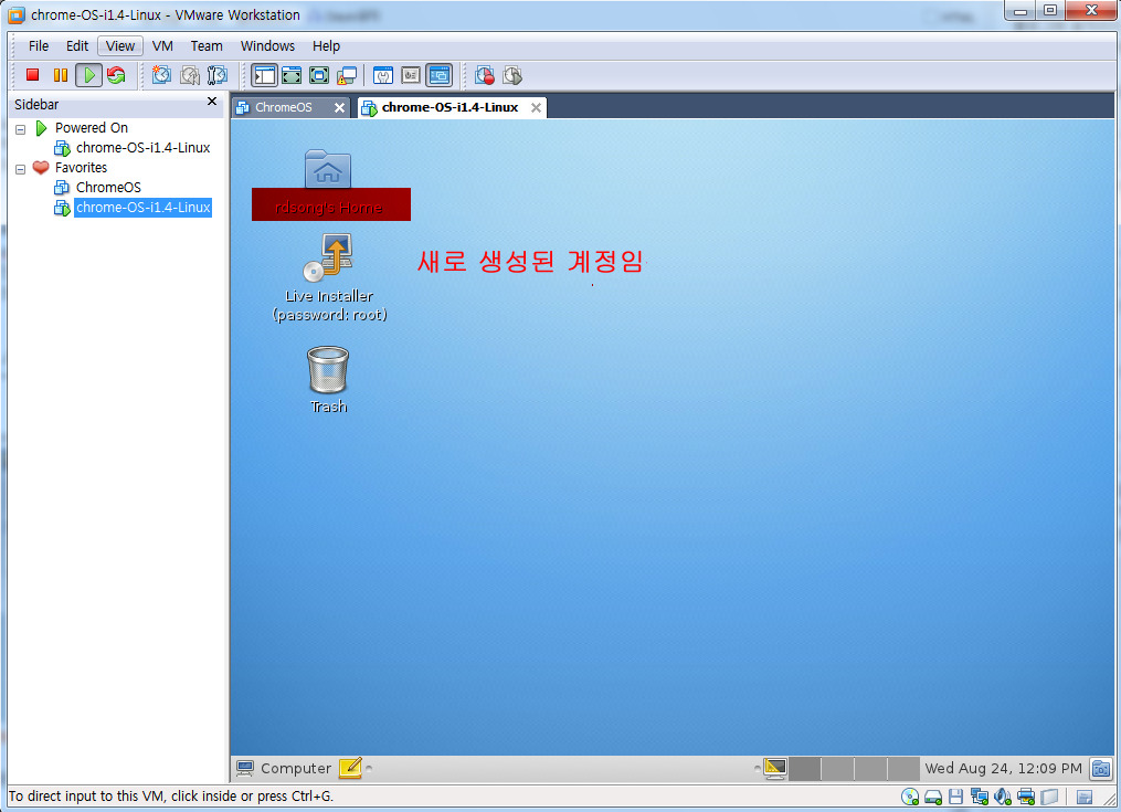 VMware workstation 에서 크롬 OS linux i686-1.4.797 를 돌려 보기