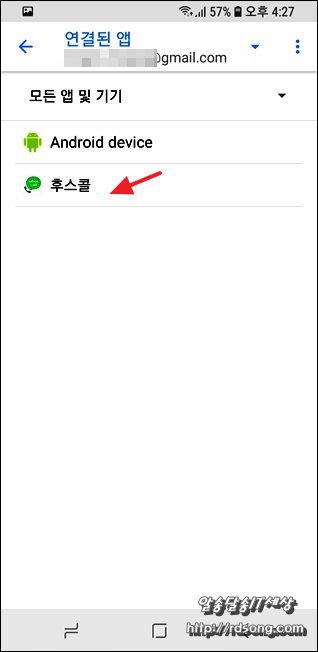핸드폰 구글 설정에 가서 보니 후스콜 구글 계정과 연결이 되어 있는데 왜 연결이 되어 있는지 알수 없지만 핸드폰 스마트폰 보안 중요한 부분이라 이런것은 연결 해제를 해둬야 하겠지요
