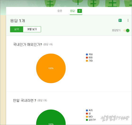 상대방이 설문이 되었다면 응답을 확인 해 봅니다