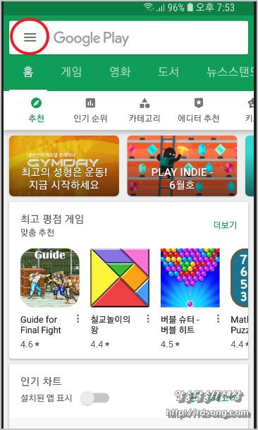 구글 플레이 앱 에서 좌측상단 눌러 봅니다 구글플레이 스토어 삭제 어플 확인 방법
