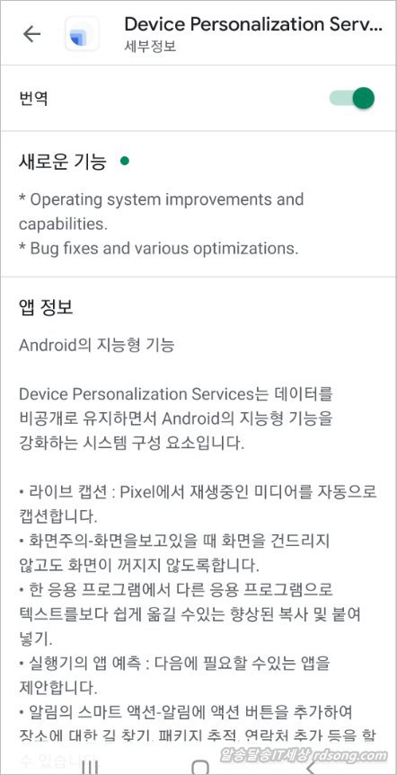 구글 플레이 Device personalization Services 앱 업데이트 떠서 적용 시켜 줬는데, 뭔지 궁금해서 찾아 봤습니다. 어떤 기능을 하고 있는 것인가?