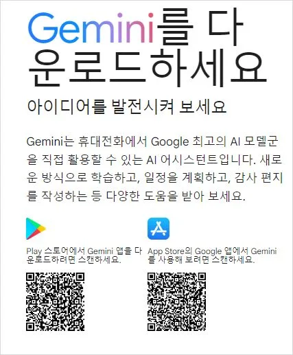 아래 바코드 스캔 하여 앱 설치 하거나 , 구글 플레이 스토어 가서 gemini , 재미나이 검색 해서 앱 설치 하면 됩니다.