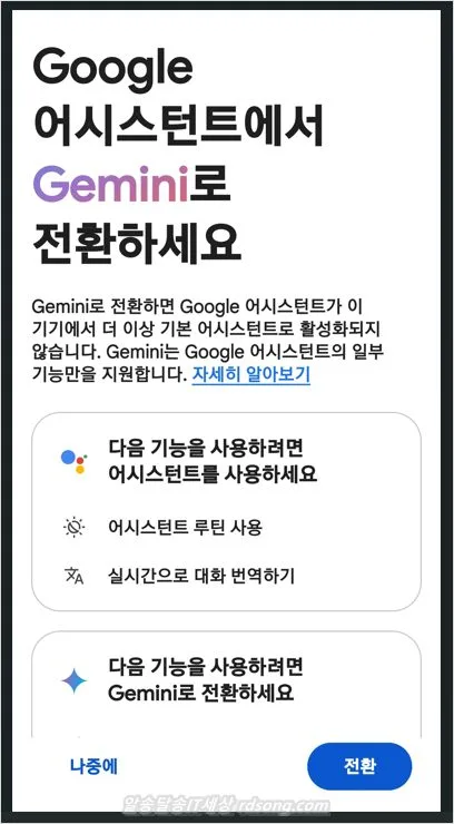 구글 어시스턴트 중지 해서 이미 쓰지 않고 있는데, 전환 하라고 하고 전환 눌러 줍니다.