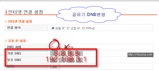 1.공유기 : 구글 DNS ip주소로 변경 하기