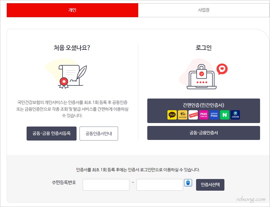 인증서 등록 방법은 주민번호 입력하고 공인인증서 선택 해 주면 됩니다.
