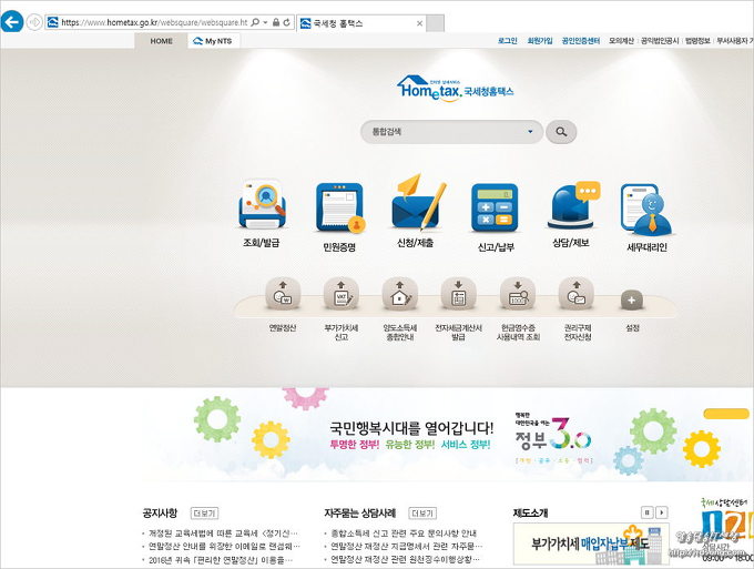 관공서 사이트에 공인인증서 사용하여 조회 발급하거나 전자신고, 전자발급 및 전자세금계산서