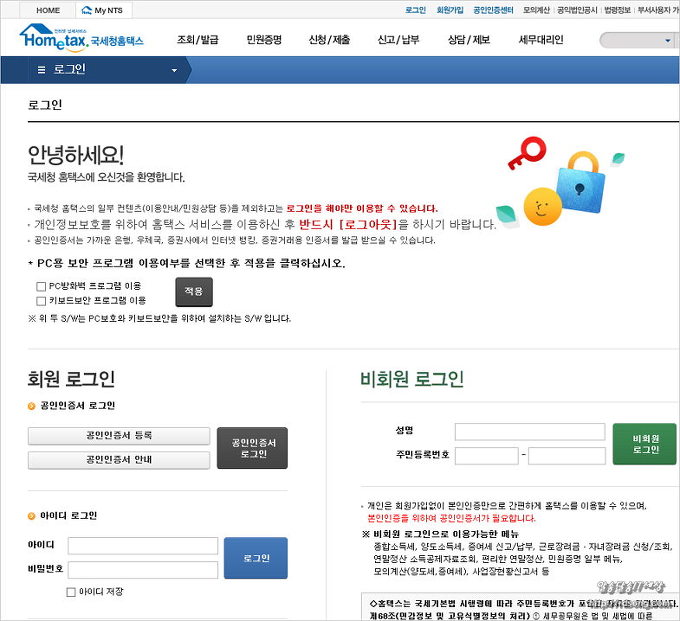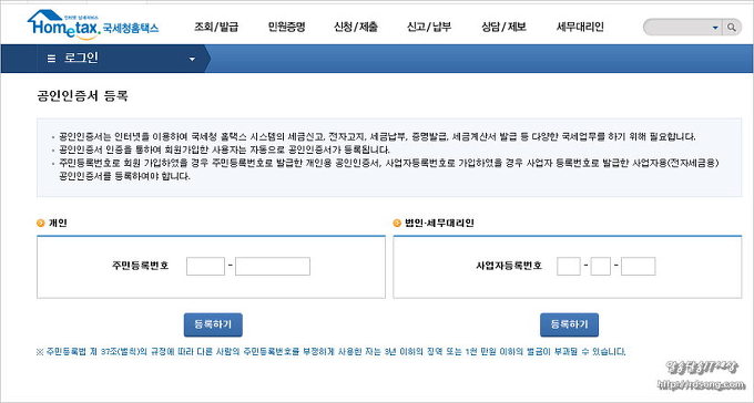 홈택스 공인인증서 등록 / 국세청 홈텍스