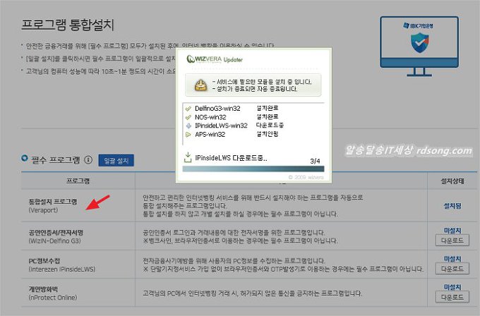 IBK 기업은행 보안프로그램 설치 / 액티브엑스 총 3가지를 설치 합니다. 통합설치 프로그램 veraport 설치하면 자동으로 3가지+1개(옵션) 연속으로 설치를 진행 합니다. 맨마지막에 악성웹탐지 서비스 필요없는 옵션도 설치 됩니다. 피곤한 액티브엑스!