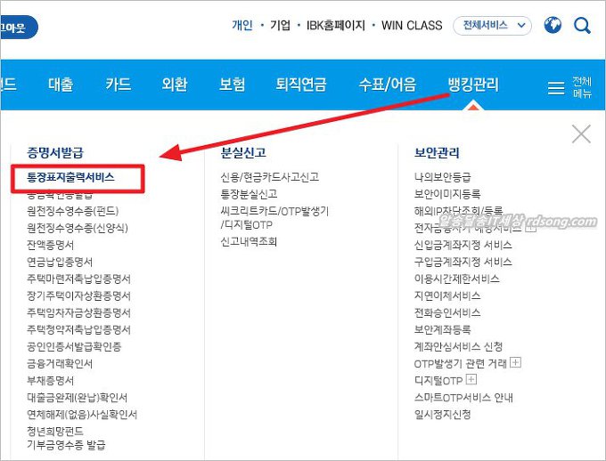 기업은행 통장출력 서비스