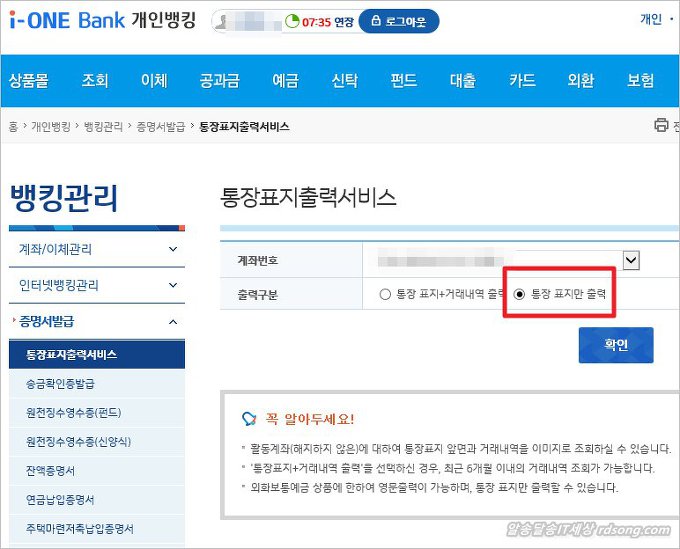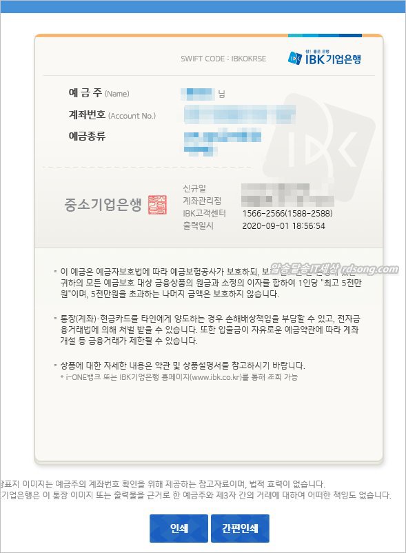 IBK 통장표지출력서비스
