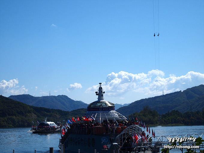 남이섬 선착장에서 하늘을 보니 오잉~ 저거 타고 남이섬에 들어가면 정말 재미있겠다능. 가격이 비싸다 보니 이용자들 가끔 보이네요
