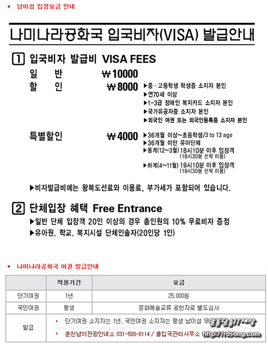 처음 오는 사람은 참 어리둥절하게 만들어 놨죠 먼넘의 입국비자란 말인가? 남이섬 왕복 입장료라고 하면 될것을 말이쥐!
