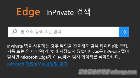인터넷 웹서핑을 많이 하는 사용자라면 엣지의 inprivate 검색을 활용하면 내컴퓨터에 검색한 정보들이 없으니 보안상 유리하고 좋습니다