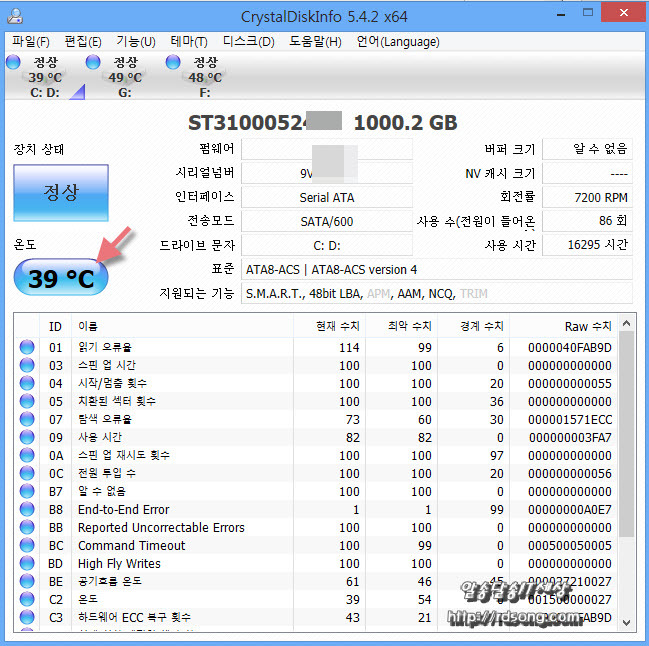 하드디스크 HDD 온도 체크 정상 확인 프로그램 CrystalDiskInfo