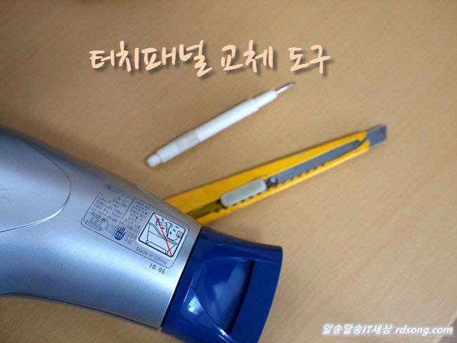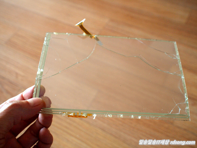 1~2mm 의 터치패널을 헤어드라이기 로 테두리를 가열하여 양면테이프로 접착된 터치패널이 잘 분리되도록 한후,