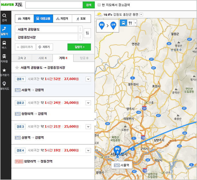 네이버 대중교통 길찾기
