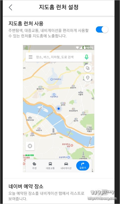 지도홈 런처 설정은 걸리적 거리면 화면에서 비활성하여 제거할수 도 있는데 사용해 보면 있는 것이 편리 하네요