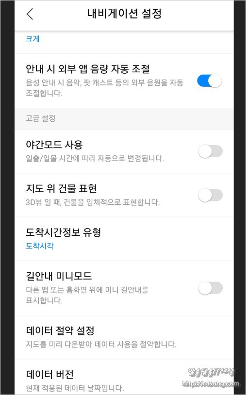 네이버 내비게이션 스마트폰 데이타 절약 모드