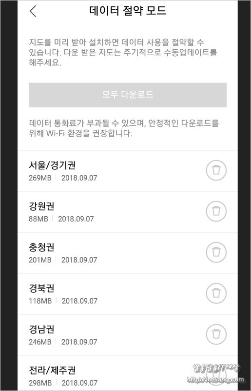네이버 내비게이션 데이타 절약 위해 지도를 미리 설치