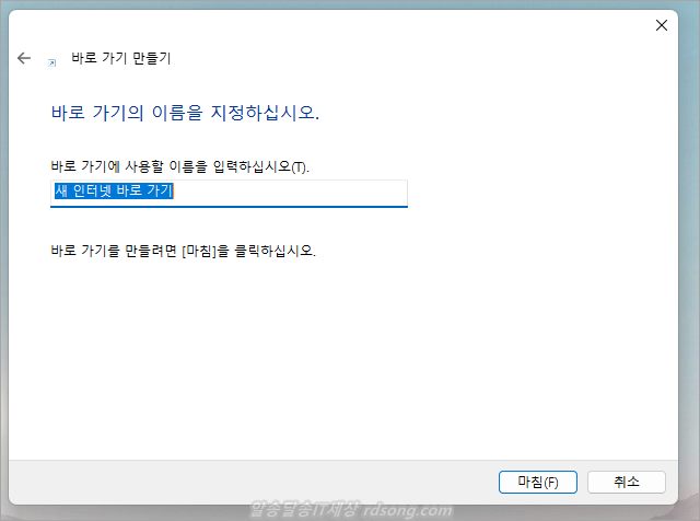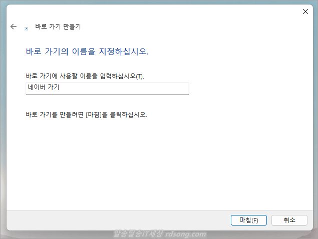 바로가기 이름 지정 하십시오 바로가기 사용할 이름 입력 합니다.