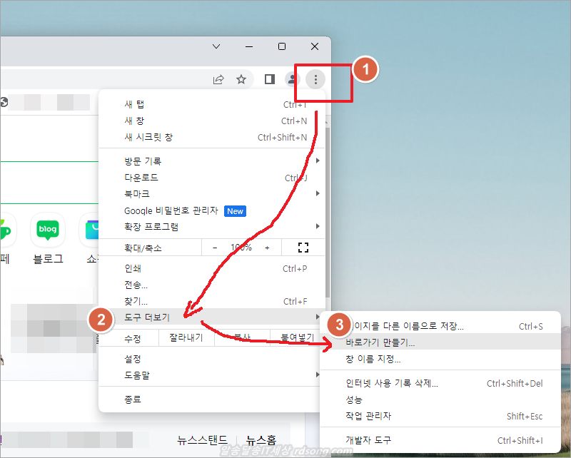 도구 더보기 – 바로가기 만들기 눌러 줍니다.